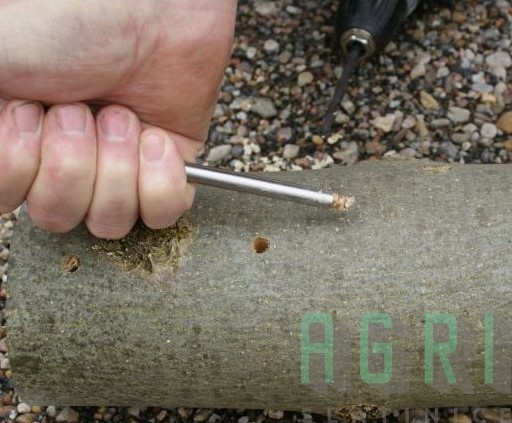 Aplikátor zrnité sadby je výborným pomocníkem při očkování dřeva zrnitou sadbou. Velmi urychluje a usnadňuje očkování pařezů a dřevěných špalků. Šetří sadbu, která při použití aplikátoru zůstává pouze v předvrtaných otvorech a nerozsýpá se mimo určené místo. Použití je velmi snadné: nejdříve do aplikátoru namačkáte potřebné množství sadby a poté ji vtlačíte do otvoru. JE PODSTATNĚ ÚČINĚJŠÍ, NEŽ KOLÍČKOVÁ SADBA