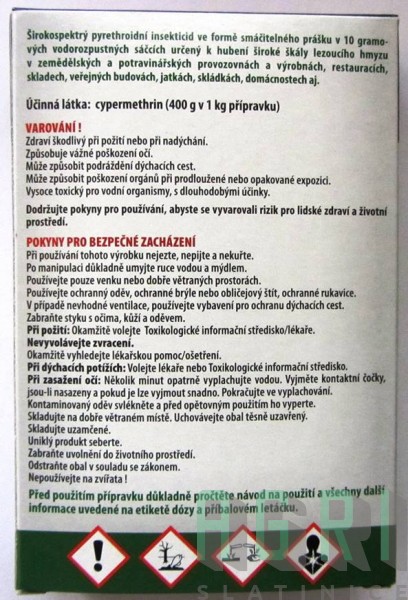 Účinná látka: 400 g cypermethrinu v 1 kg přípravku