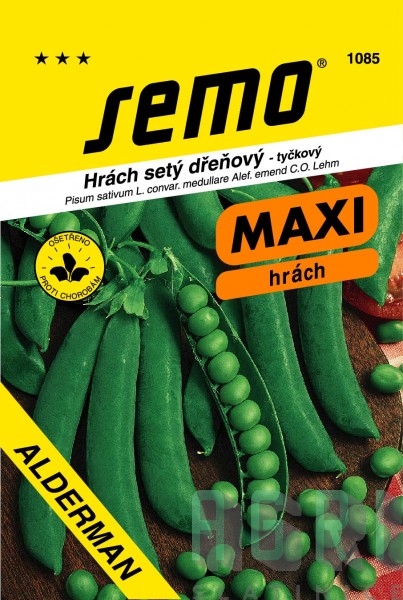 ALDERMAN Pozdní odrůda hrachu vysokého vzrůstu určená především pro pěstování s oporou. Jako oporu lze použít drátěnku, tyč nebo nechat volně popínat po plotu. Rostlina dosahuje výšky 140 – 160 cm. Tvoří lusky velikosti 10 – 12 cm o obsahu 9 – 10 zrn světle zelené barvy. Tuto odrůdu lze pěstovat také bez opory, kdy rostliny jsou volně polehané.