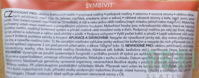Přípravek SYMBIVIT® je založený na využití skvělých vlastností mykorhizních hub. Jedná se o granulovaný přípravek, který má snadné použití a Vaše rostliny z něj budou moci čerpat to nejlepší pro jejich krásný růst a odolnost. Mykorhizní houby obsažené v Symbivitu se napojí na kořeny Vašich rostlin a budou růst, čerpat živiny z půdy a podporovat rostlinu po celý její život. Účinek SYMBIVITU zlepšení výživy, růstu a zdravotního stavu rostlin lepší tvorba květů a plodů, větší výnos výrazně snížená potřeba zálivky a hnojení zvýšení odolnosti rostlin vůči stresu (sucho, přesazení, aj.) vhodné i pro použití rostlin pěstovaných ve svahu (vliv na zpevnění půdy)