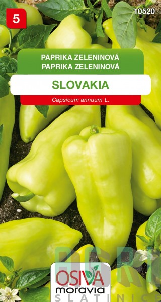 SLOVAKIA je velmi raná a produktivní odrůda polní sladké papriky. Plody jsou světle zelené a v botanické zralosti červené se stěnou silnou asi 0,5 cm. Mají šťavnatou, svěží a lahodně sladkou chuť