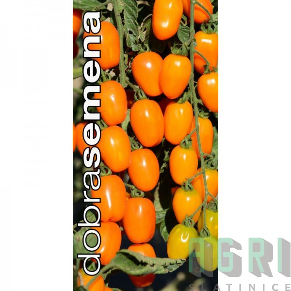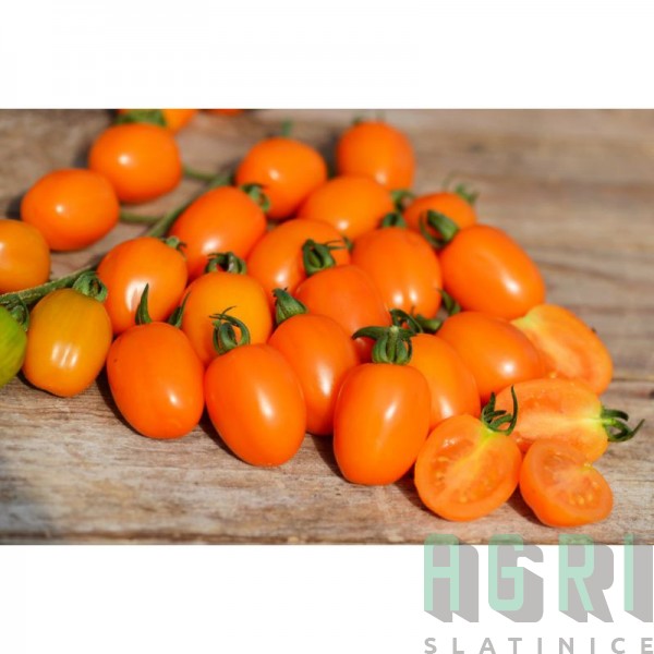 Menší, sytě oranžové plody o hmotnosti kolem 20 g, podlouhlé a mírně zúžené ke špičce. Jsou výrazně sladké, mají méně šťávy a vyšší podíl dužiny. Vijany jsou nevětvené, ale extrémně dlouhé. Rostlina vykazuje odolnost k plísni bramborové, chemickou ochranu můžete výrazně omezit.