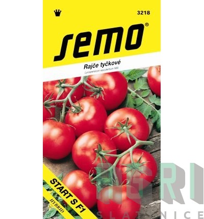Rajče tyčkové Lycopersicon lycopersicum / Rajčiak kolíkový START S F1 Osvědčený hybrid raného tyčkového rajčete. Rostlina je středně vzrůstná. Plod je středně velký, se slabým náznakem žeber, intenzivně červený. Hmotnost plodů je 75 – 90 g.