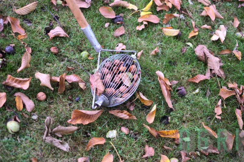 Sběrač ořechů s teleskopickou hliníkovou násadou nastavitelnou v rozmězí 70 - 120 cm je vhodný pro sběr plodů o velikosti 1,5 cm až 6 cm, jako jsou různé ořechy, kaštany, žaludy, šišky i menší ovoce. Sběrač ořechů je doplněn o kovový držák, který po upevnění na připravenou nádobu usnadní vysýpání sběrače. Sběrač ořechů je opatřen lamelami z nerezové oceli o pr. 1 mm, které se mírným tlakem rozestupují a sbírají ořechy a jiné plody dovnitř sběrače. Velikost sběrače cca š. 24,5 cm, průměr v nejširším místě 21,5 cm. Sběrač ořechů a jiných plodů s teleskopickou násadou umožňuje pohodlný sběr bez nutnosti se zohýbat nebo si kleknout.