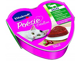 Hezké mističky ve tvaru srdce značky Vitakraft obsahují lahůdky z drůbežího, rybího či jiných druhů mas v rafinovaném želé, omáčce nebo terině. Všechny varianty řady Poesie jsou neodolatelné, neboť jsou připravovány s láskou. Složené jsou z vybraných surovin a neobsahují cukr, barviva ani konzervační látky. Můžete tak rozmazlovat svou domácí šelmu s veškerou láskou!