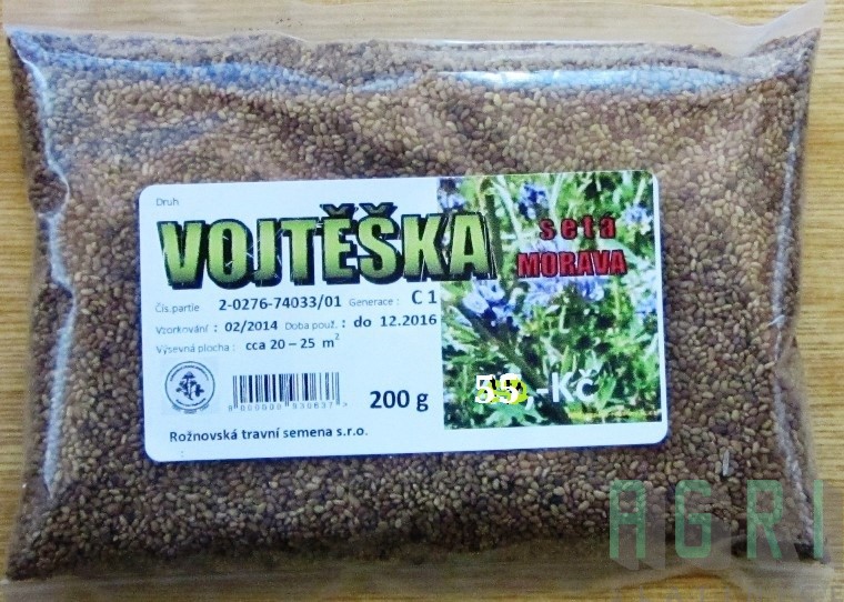 Popis: Vojtěška setá je třicet až devadesát centimetrů vysoká víceletá (může růst i 12 let) fialově až modrofialově kvetoucí rostlina náležící do čeledi bobovité. Jde o významnou pícninu. Hraje významnou roli v zemědělství jako krmivo, a to jako objemné krmivo čerstvá nebo sušená (seno) i jako jadrné krmivo coby součást různých směsí a granulí. Vojtěška je obtížně silážovatelná, a to kvůli vysokému obsahu dusíkatých látek, nízkému obsahu zkvasitelných cukrů a nízké pufrační kapacitě. Je to však jeden z hlavních a nejlevnějších zdrojů rostlinných bílkovin v krmných dávkách. Vojtěška setá má fyziologické účinky, tedy působí na organismus. Využívá se jako léčivá bylina zejména při léčbě revmatismu, podporuje trávení (reguluje střevní mikroflóru) a je schopna snižovat kyselost v trávicím traktu, napomáhá správné funkci ledvin a jater, ovlivňuje hladinu cukru v krvi a působí protizánětlivě. Obsahuje vitamíny A, B, C, D, E, K dále minerální látky jako draslík, fosfor, zinek, vápník a železo. Obsahuje dokonce i málo známý vitamin U, který je obsažen také v syrovém zelí. Klíčky vojtěšky obsahují až 40 % bílkovin, což je více, než obsahuje vejce, mléko či maso. Díky obsahu chlorofylu má také silné detoxikační účinky. Vojtěška setá dále zpomaluje proces stárnutí, zvyšuje fyzickou sílu, posiluje imunitní systém, je vhodná pro diabetiky zmírňuje záněty a revmatické bolesti, zlepšuje trávení, působí proti nechutenství a nadýmání, osvědčuje se při hojení vředové nemoci žaludku a při neutralizaci kyselé žaludeční šťávy, potlačuje akutní i chronické záněty prostaty a močového měchýře.